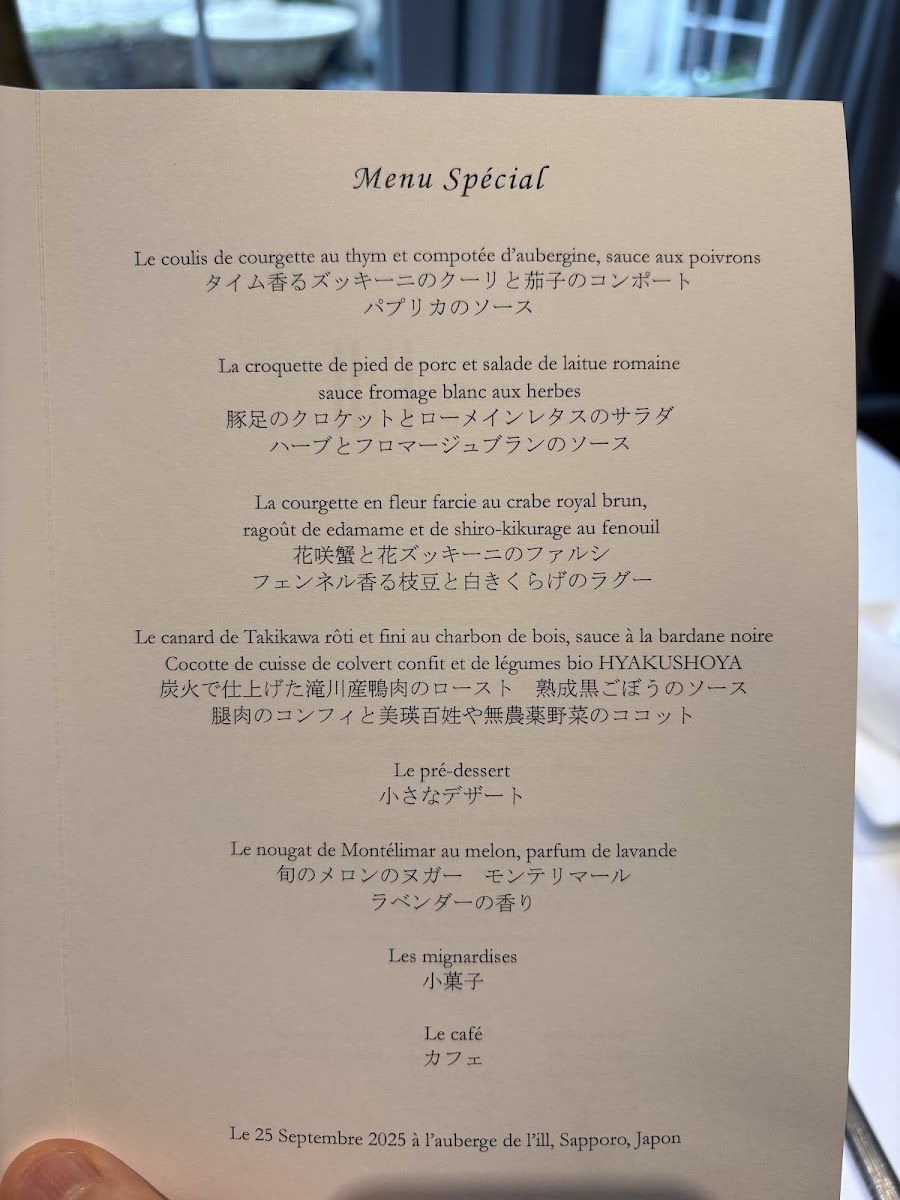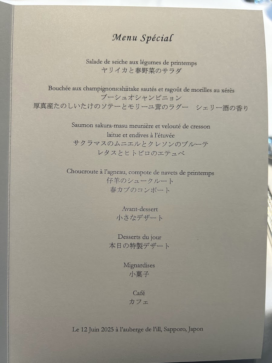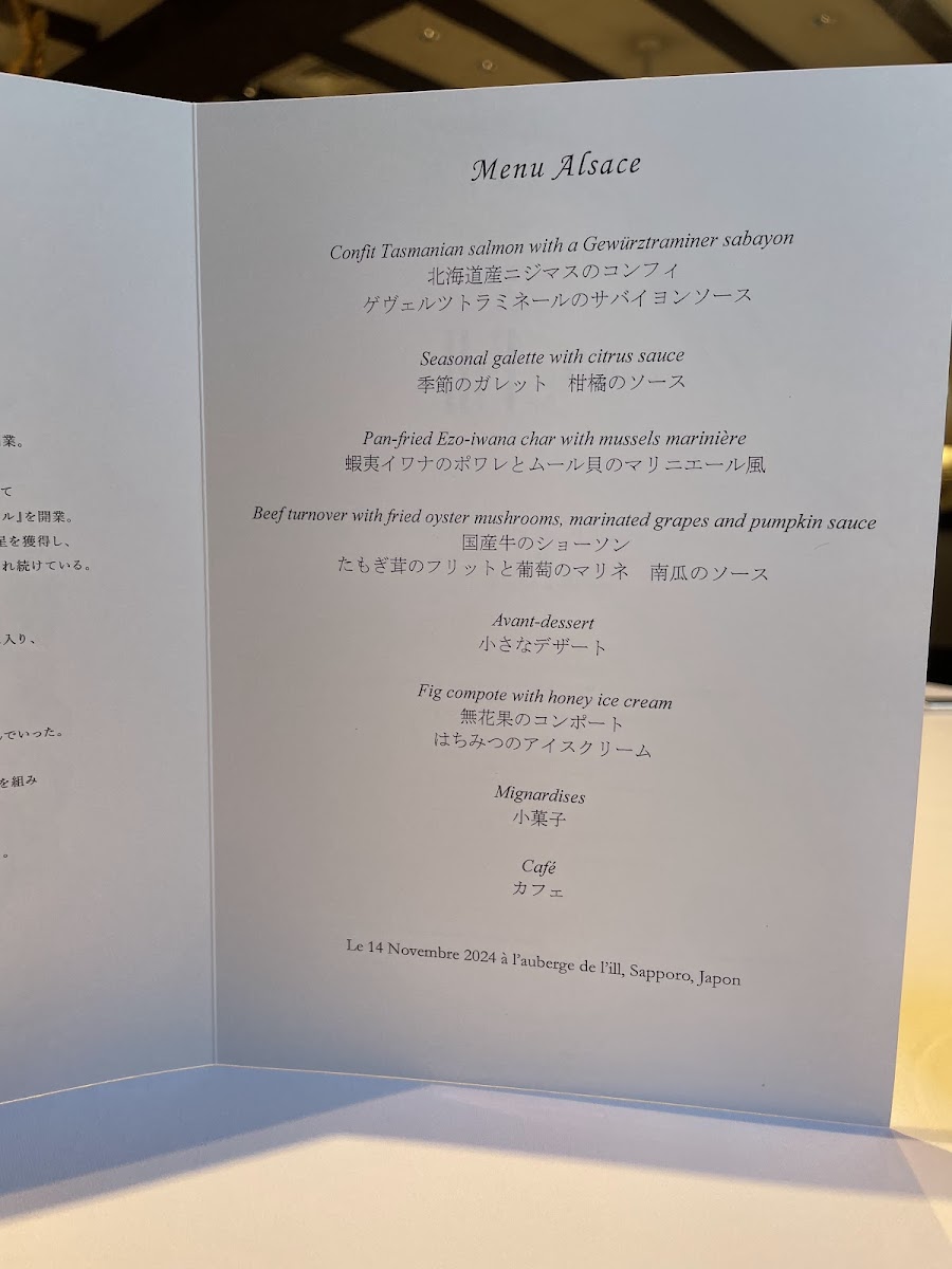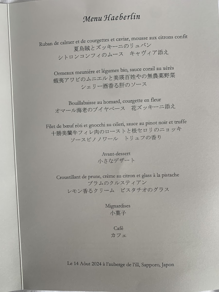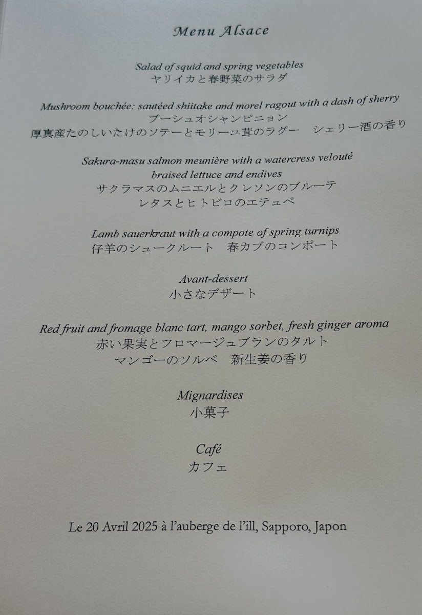 From a reviewer’s perspective, the menu at L’Auberge De L’Ill Sapporo reflects a refined and deeply rooted French culinary identity, carefully adapted for an elegant dining experience in Hokkaido. The lunch offerings are presented through a series of thoughtfully curated course menus, including Menu Français(平日限定), Menu d'Alsace, Menu Illhaeusern, and Menu Haeberlin, all designed to showcase classical French techniques and the restaurant’s culinary philosophy. These lunch courses are offered with 10% consumption tax and 10% service charge included, allowing diners to focus purely on the gastronomic journey without hidden costs. At the heart of the menu lies the restaurant’s celebrated specialty, 鵞鳥のフォアグラのテリーヌ オーベルジュ・ド・リル風, a signature foie gras terrine prepared in the traditional Auberge de l’Ill style, which stands as a symbol of the restaurant’s heritage and mastery. Overall, the menu does not overwhelm with excessive choices but instead emphasizes quality, balance, and authenticity, making it clear that each dish is crafted to represent the legacy of L’Auberge de l’Ill while delivering a polished, memorable dining experience worthy of its reputation.